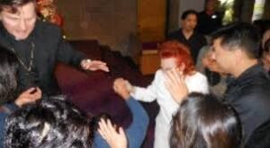 When W. J. Seymour preached at Azusa Street, the meetings were called a ‘revival’. Why? Because so-called slaying in the spirit and tongues were combined! To these early Pentecostalists they were the ‘proof’ that God was with them in a powerful way. The hard fact is, all the manifestations were those found in demonic hypnosis (see BTM Article on the subject). One who took part in these early years, Bartleman, said: “At Eighth and Maple Streets such a divine ‘weight of glory’ was upon us we could only lie on our faces. For a long time we could hardly remain seated even…” (‘Another Wave Rolls In’, by Bartleman. Voice Publications. 1962). And: “It was also reported that the ‘jerks’ and ‘treeing the devil’ (that is, crawling on all fours and barking up a tree like a dog) were in evidence in the (Azusa) mission.” Bartleman, in favour of the movement and not wanting to write anything negative, refers to a Baptist pastor who ran around hugging everyone he could get hold of. This was called ‘divine love’. Remember, all this – and the kissing – all took place at a time in history when such behavior would have been shocking.