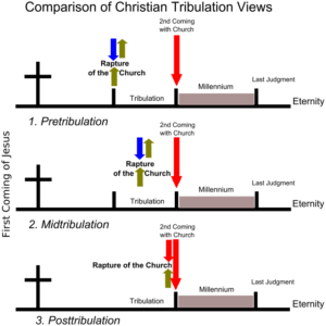 There are basic three views when the “Rapture” will take place. They all relate to the “Tribulation” of the end times, which, according to most believers, is thought to last for seven years. During the tribulation time, the Antichrist – also called “the man of sin” – will be revealed; and the Mark of the Beast will be established. Also, during the Tribulation – or at least, during part of it – God will pour out his wrath on the earth.